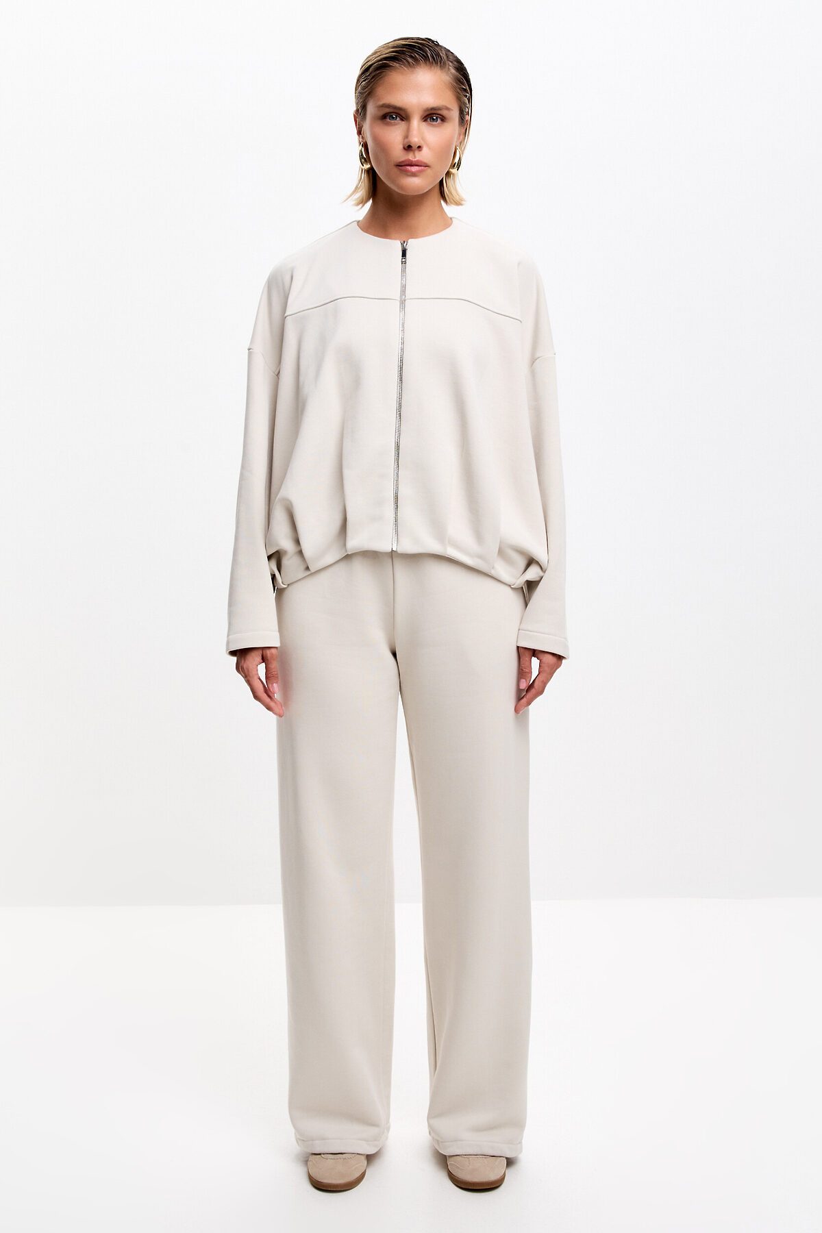 Широкие брюки из высококачественного хлопкового полотна премиум класса компакт пенье - футер 3х-нитка без начёса, с плетением нити диагональ. Идеальны для прогулки прохладным летним днем или на демисезон, комфортно до +20 градусов.