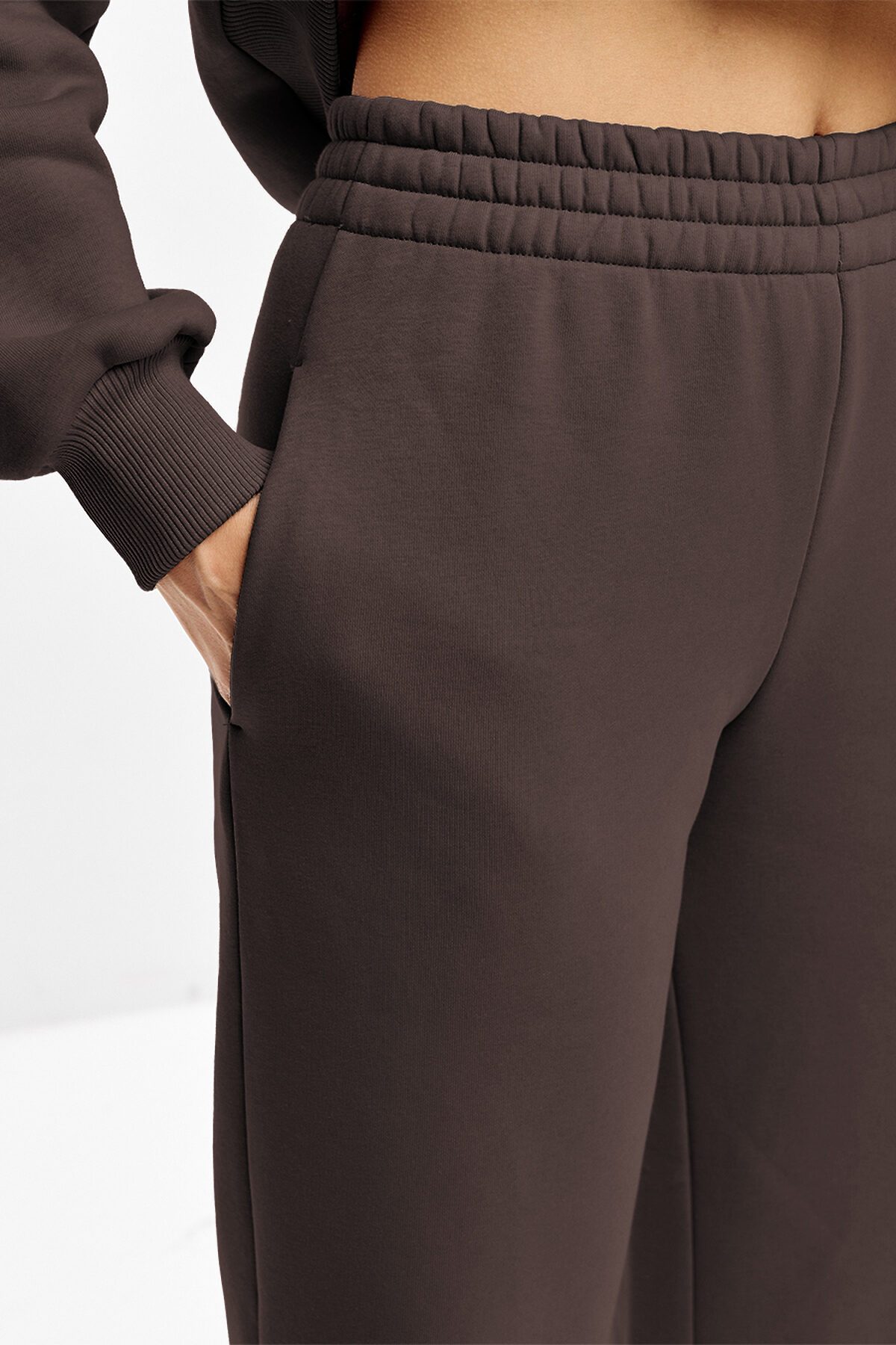Прямые брюки палаццо с широким поясом на резинке с тройной отстрочкой и удобными боковыми карманами. Брюки визуально вытягивают силуэт и стройнят.