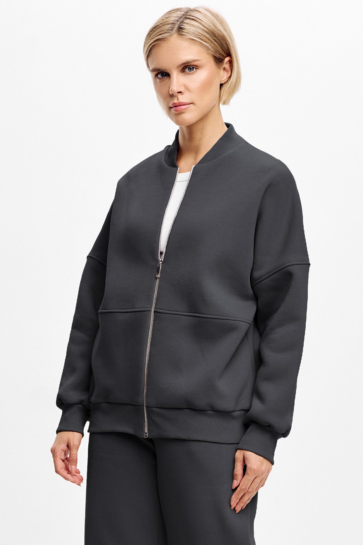 Толстовка оверсайз с геометричными 3d отстрочками, застегивается на металлическую молнию. Манжет, ворот и низ изделия выполнен из качественного эластичного материала в рубчик.