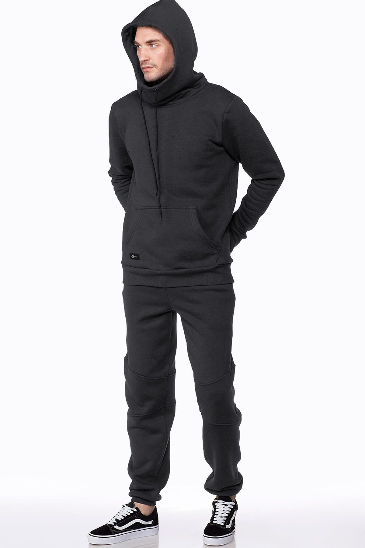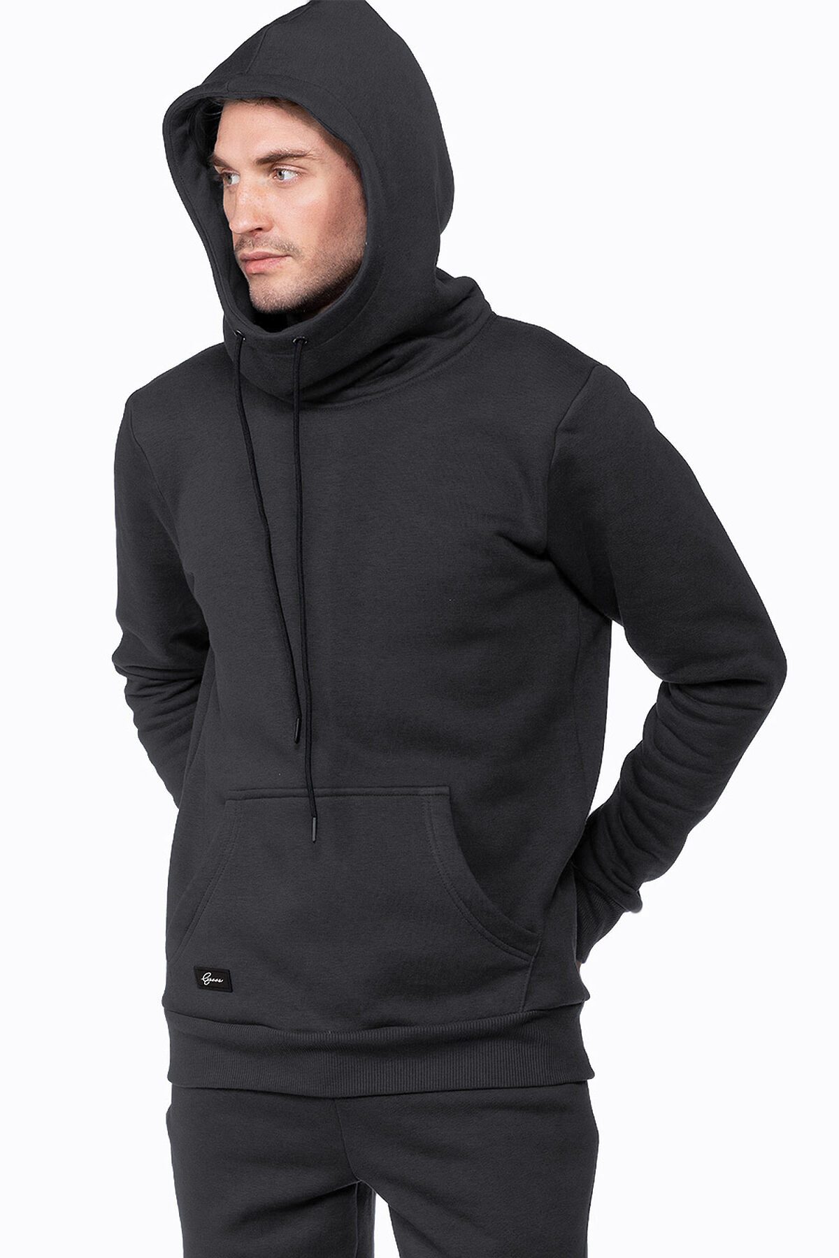 Худи прямого кроя, с втачным рукавом, объемным капюшоном "космонавт", закрывающим шею, на текстильных шнурках. Худи с геометричным карманом кенгуру, деокорированным именным шевроном с логотипом Ezanna. Манжет и низ изделия выполнен из качественного эластичного материала в рубчик.