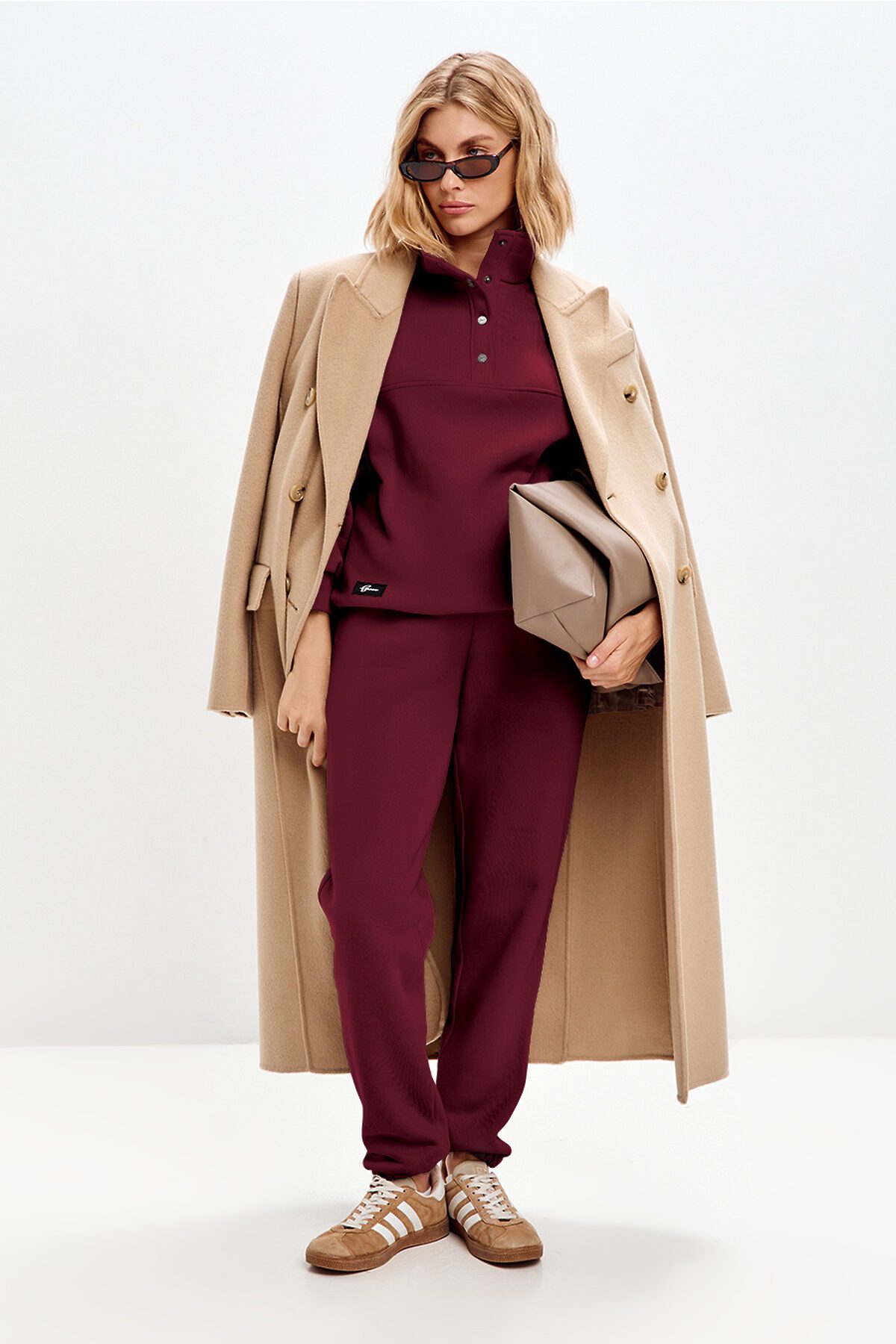 Классические джоггеры с высокой посадкой на талии. Широкий пояс с тройной отстрочкой, по низу на эластичной резинке. Удобные боковые карманы, стильный силуэт.