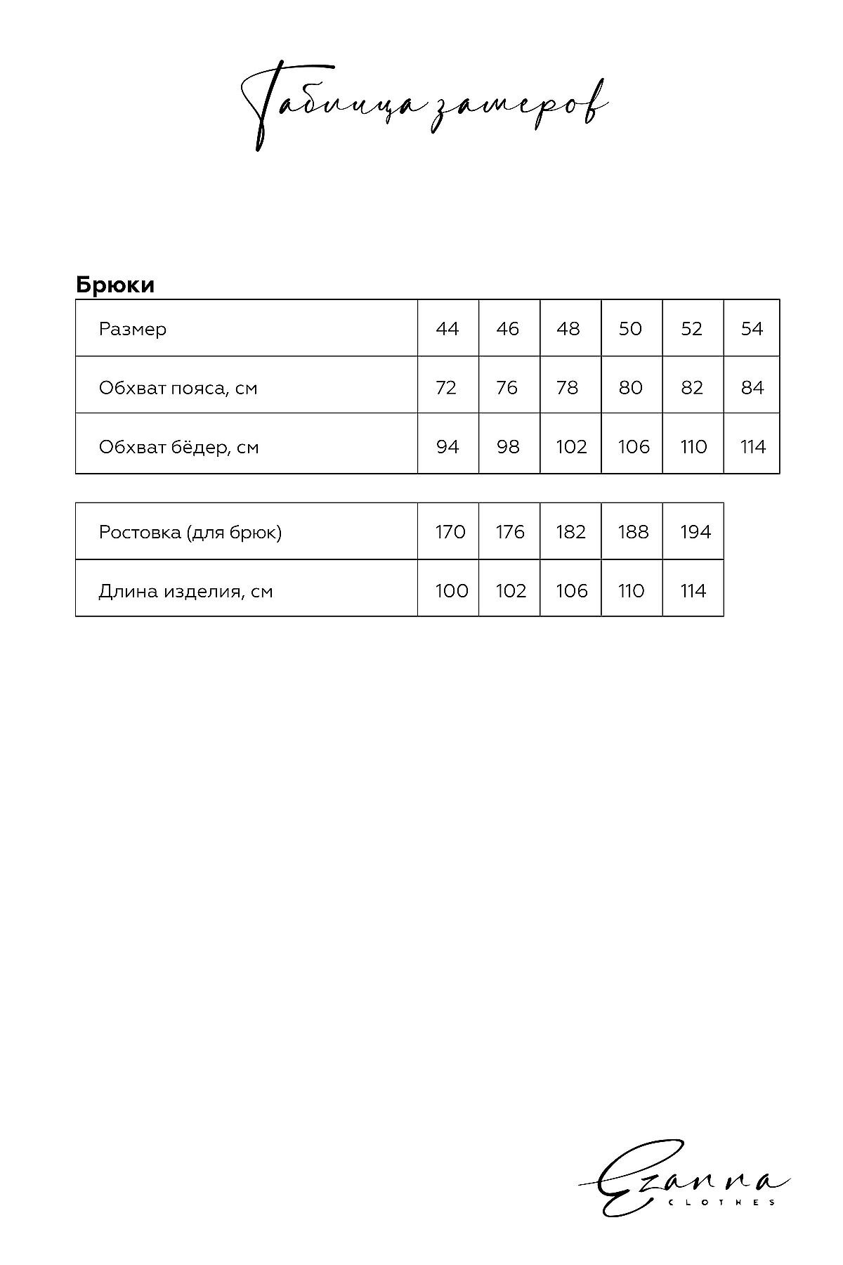 Модель свободного, чуть зауженного к низу кроя, с декоративными вставками с рельефной строчкой. Брюки с удобными боковыми карманами, декорированы именным брендированным шевроном Ezanna. Пояс выполнен из эластичного фактурного материала, низ брюк на манжете.