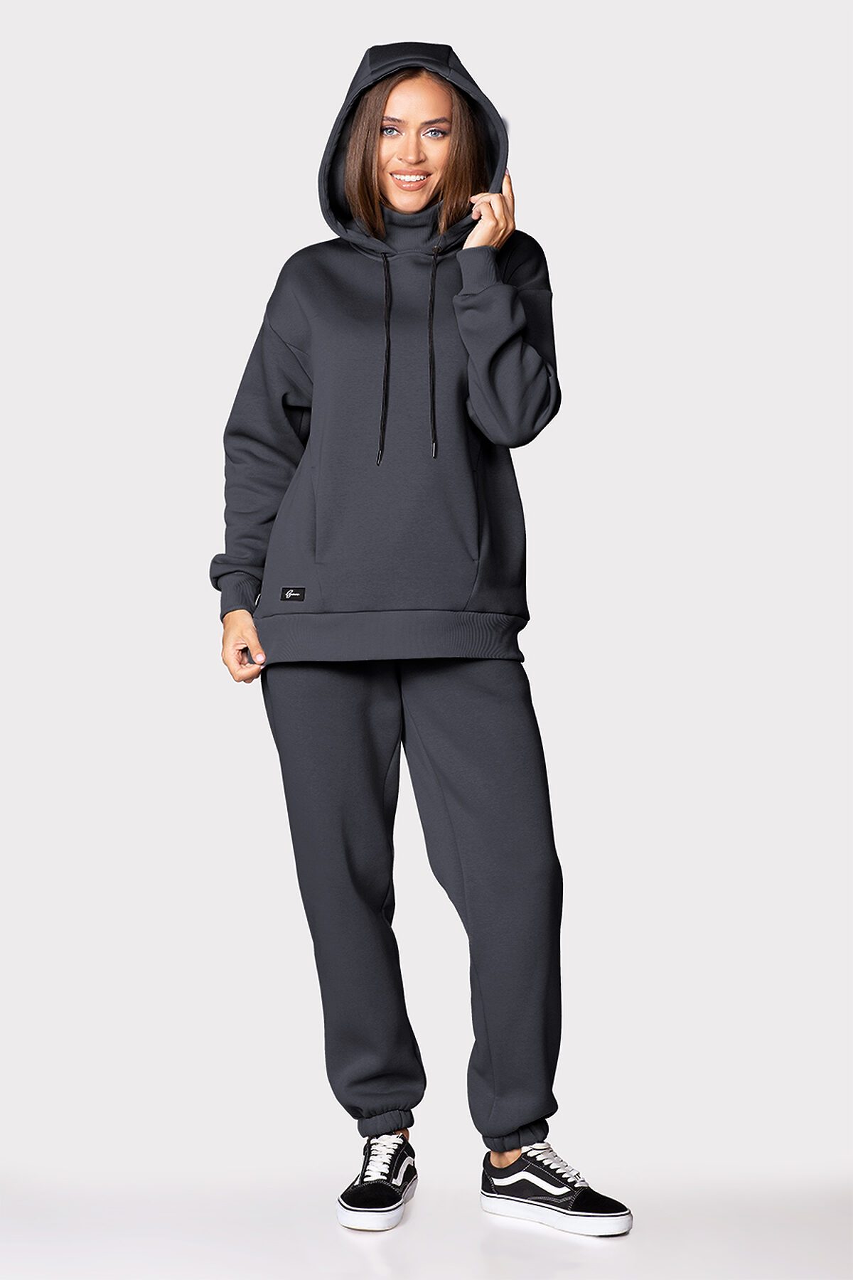 Худи свободного кроя, немного удлиненно, со спущенной линией плеча. Объемный капюшон со шнурами в дуэте с высоким воротом - идеальный вариант против ветра, холода и непогоды. Декорировано оригинальными боковыми швами с функциональными карманами. Манжет и низ изделия выполнены из качественного эластичного материала в рубчик.