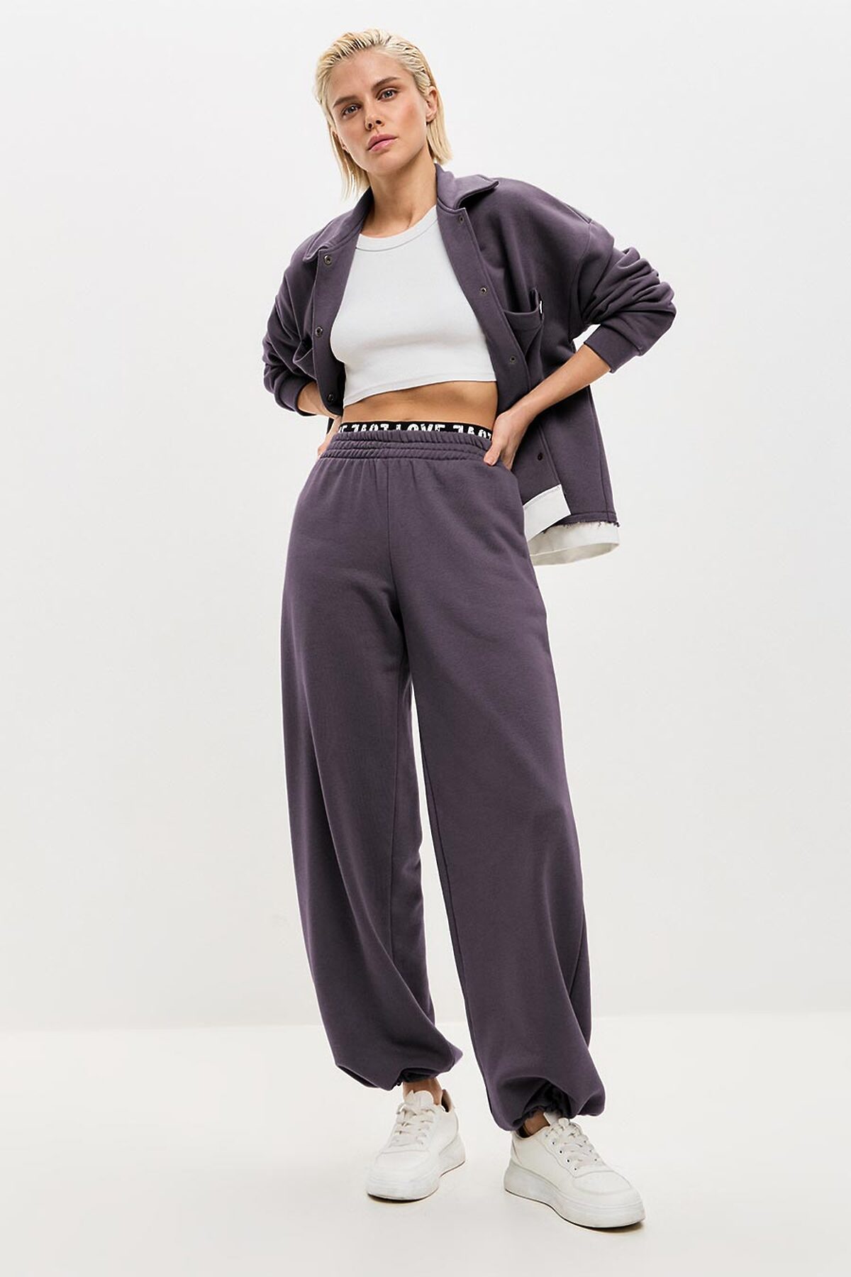 Брюки широкого кроя, пояс выполнен из основной ткани, удобные боковые карманы. По низу брючин регулируемая резинка-утяжка, которая позволяет носить брюки как палаццо прямого кроя, либо затянув низ - как джоггеры. В таблице замеров указаны параметры готового изделия (не обхваты фигуры).