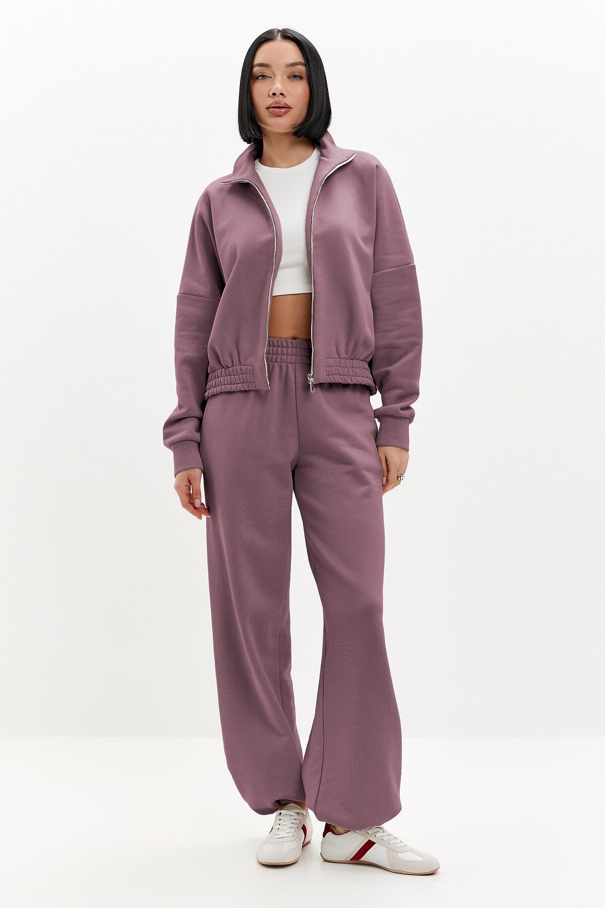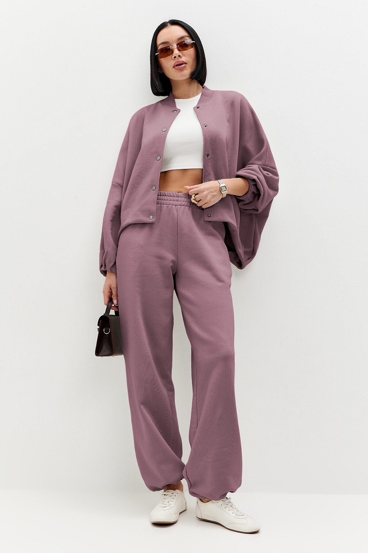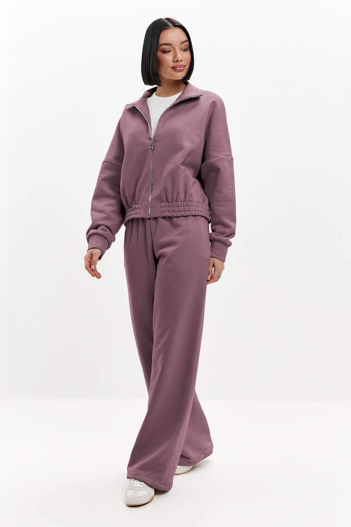 Брюки широкого кроя, пояс выполнен из основной ткани, удобные боковые карманы. По низу брючин регулируемая резинка-утяжка, которая позволяет носить брюки как палаццо прямого кроя, либо затянув низ - как джоггеры. В таблице замеров указаны параметры готового изделия (не обхваты фигуры).