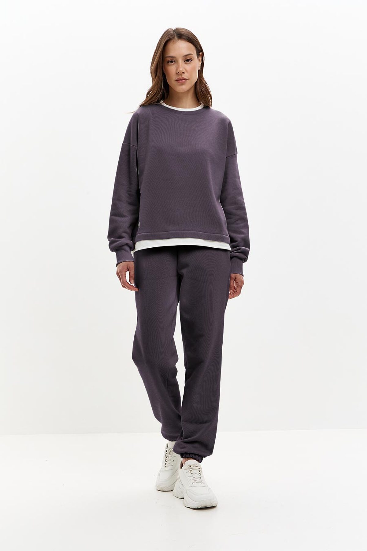 Модель оверсайз, со спущенной линией плеча. Контрастная белая горловина и дублирующая белая полоска по низу имитирует многослойность. Горловина и манжеты изделия выполнены из качественного эластичного материала в рубчик. Базовые джоггеры с высокой посадкой. Пояс на резинке с двойной отстрочкой и с резинкой по низу брюк. Удобные боковые карманы. В таблице размеров указаны размеры готового изделия (не обхваты фигуры).