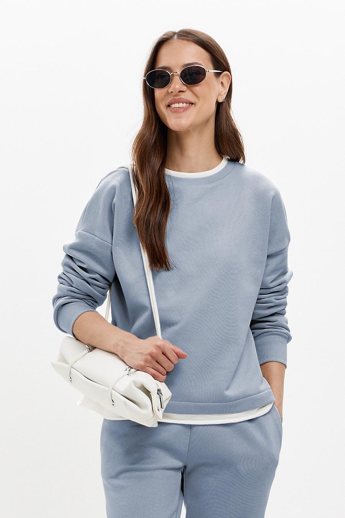 Модель оверсайз, со спущенной линией плеча. Контрастная белая горловина и дублирующая белая полоска по низу имитирует многослойность. Горловина и манжеты изделия выполнены из качественного эластичного материала в рубчик. Базовые джоггеры с высокой посадкой. Пояс на резинке с двойной отстрочкой и с резинкой по низу брюк. Удобные боковые карманы. В таблице размеров указаны размеры готового изделия (не обхваты фигуры).