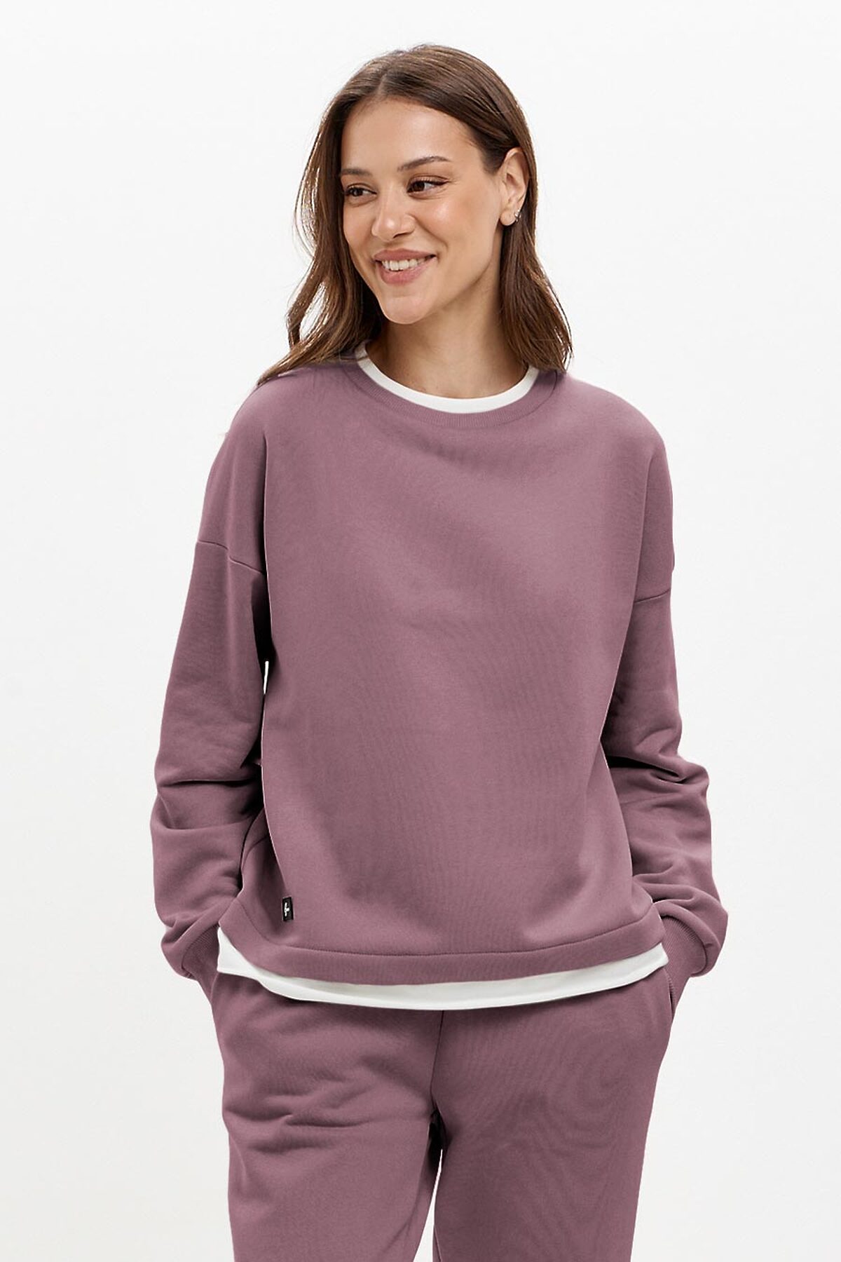 Модель оверсайз, со спущенной линией плеча. Контрастная белая горловина и дублирующая белая полоска по низу имитирует многослойность. Горловина и манжеты изделия выполнены из качественного эластичного материала в рубчик. Базовые джоггеры с высокой посадкой. Пояс на резинке с двойной отстрочкой и с резинкой по низу брюк. Удобные боковые карманы. В таблице размеров указаны размеры готового изделия (не обхваты фигуры).