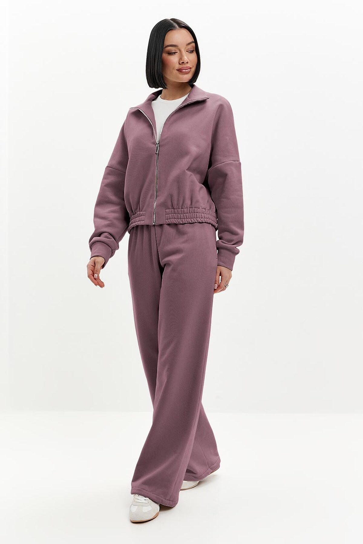Толстовка на разъемной молнии. Ворот стойка и манжеты выполнены из основной ткани. Низ изделия на резинке с тройной отстрочкой.