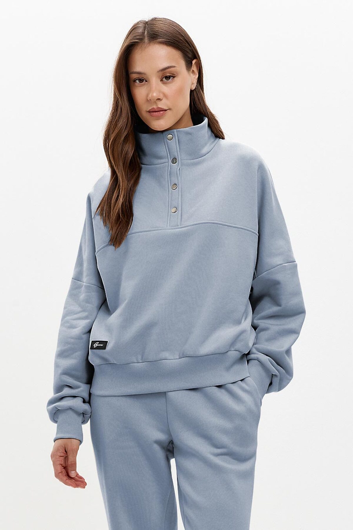 Стильный свитшот с воротом из высококачественного хлопкового полотна премиум класса компакт пенье - футер 3х-нитка.